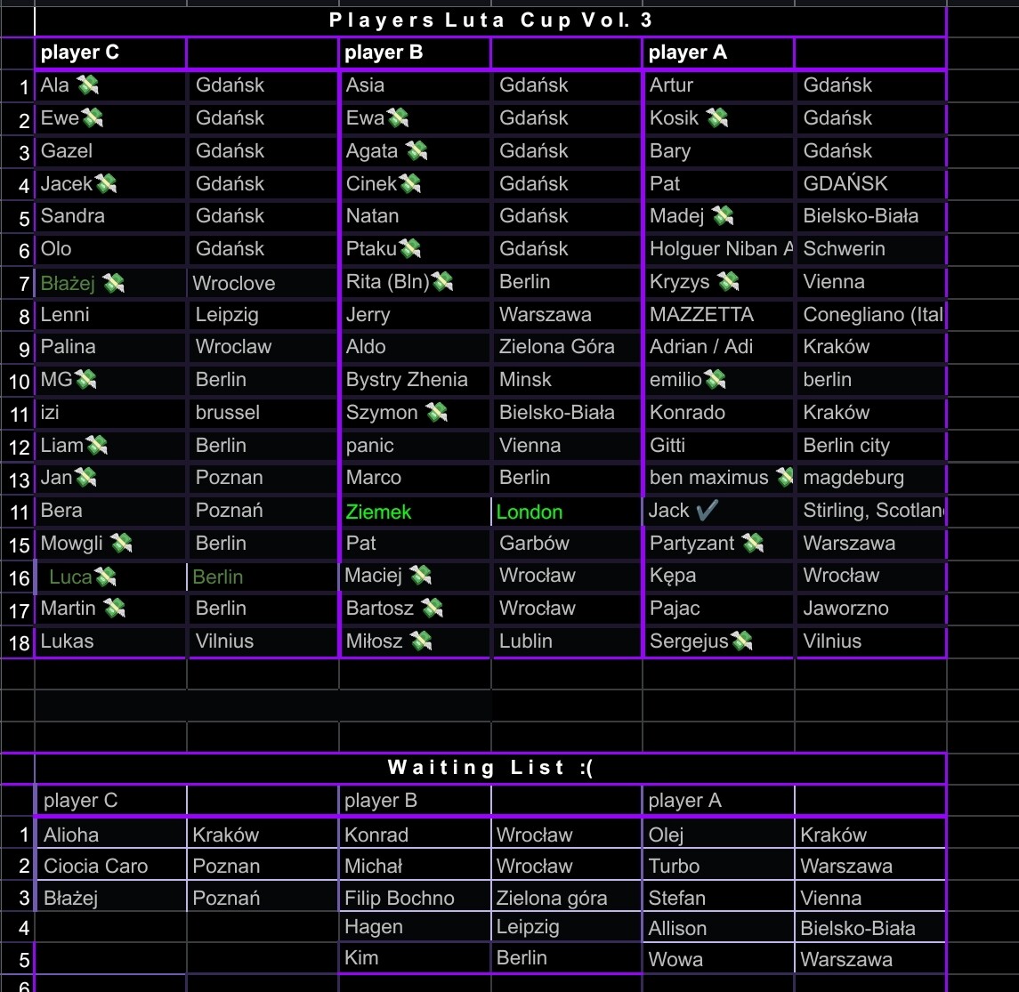 This year we decided to try a new system to ensure more or less even numbers from all skill levels. We have drawn players from three pots—C, B, and A (B+)—based on your self-evaluation in the registration form.